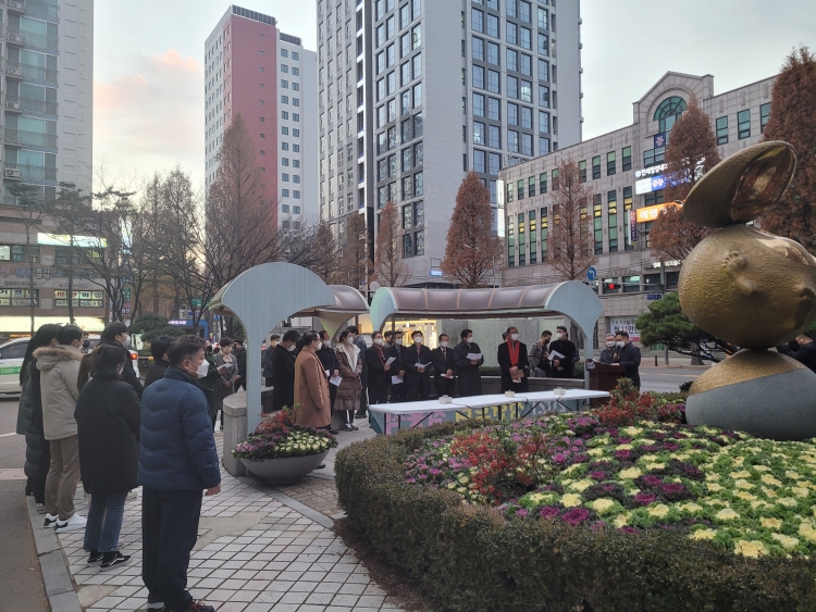 °¼±¸Ã»¾Õ ±¤Àå¿¡ ¼³Ä¡µÈ Å©¸®½º¸¶½ºÆ®¸® Á¡µî½Ä¿¡