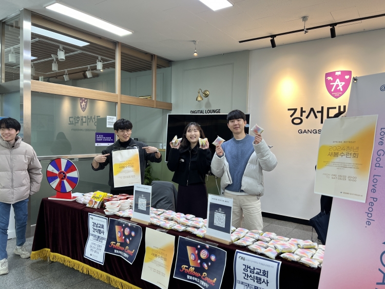 ¿ì¸® ±³È¸ ONû³âȸ û³âµéÀÌ 19ÀÏ-20ÀÏ ÀÌÆ² °£ °¼´ëÇб³¿¡ °¡¼ ÁغñÇÑ °£½Ä°ú ¼±¹°À» ³ª´©°í ±³È¸ ¾È³»¿Í È«º¸¸¦ ÇÏ¸ç ´ëÇлý Ä·ÆÛ½º Àüµµ¸¦ ÇÏ¿´½À´Ï´Ù.