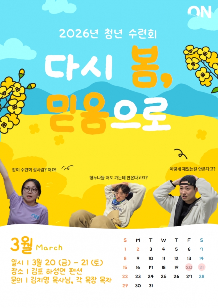 3¿ù 20ÀÏ(±Ý)~21(Åä)'´Ù½Ã º½, ¹ÏÀ½À¸·Î'¶ó´Â ÁÖÁ¦·Î û³â¼ö·Ãȸ¸¦ ÁøÇàÇÕ´Ï´Ù.